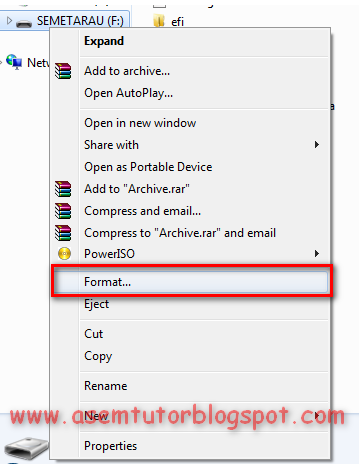 - Klik kanan pada Flashdisk anda lalu pilih Format.